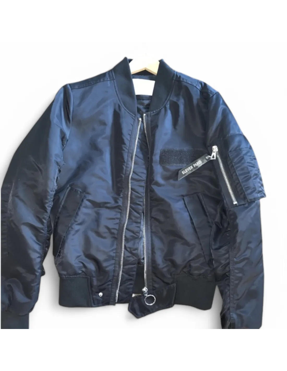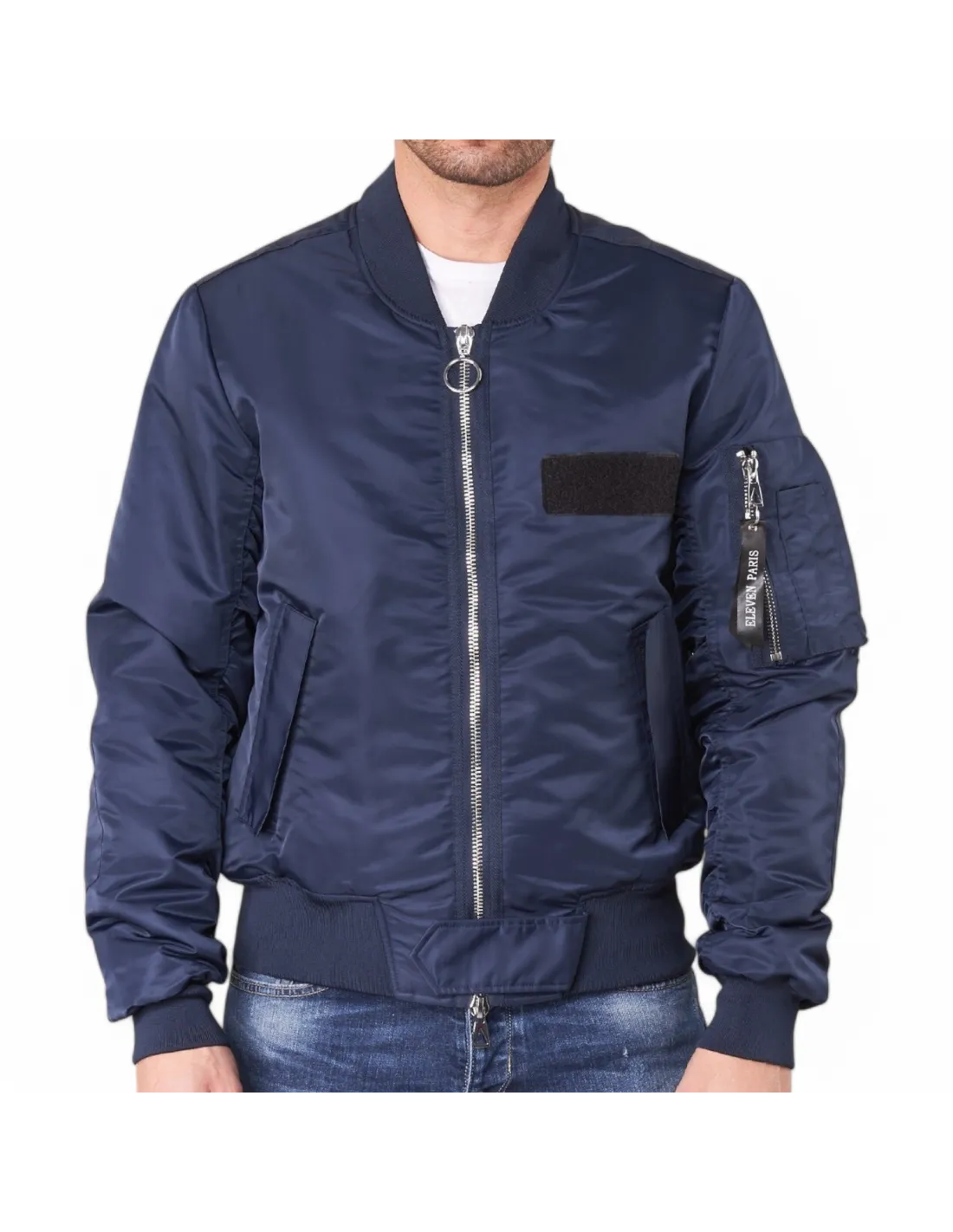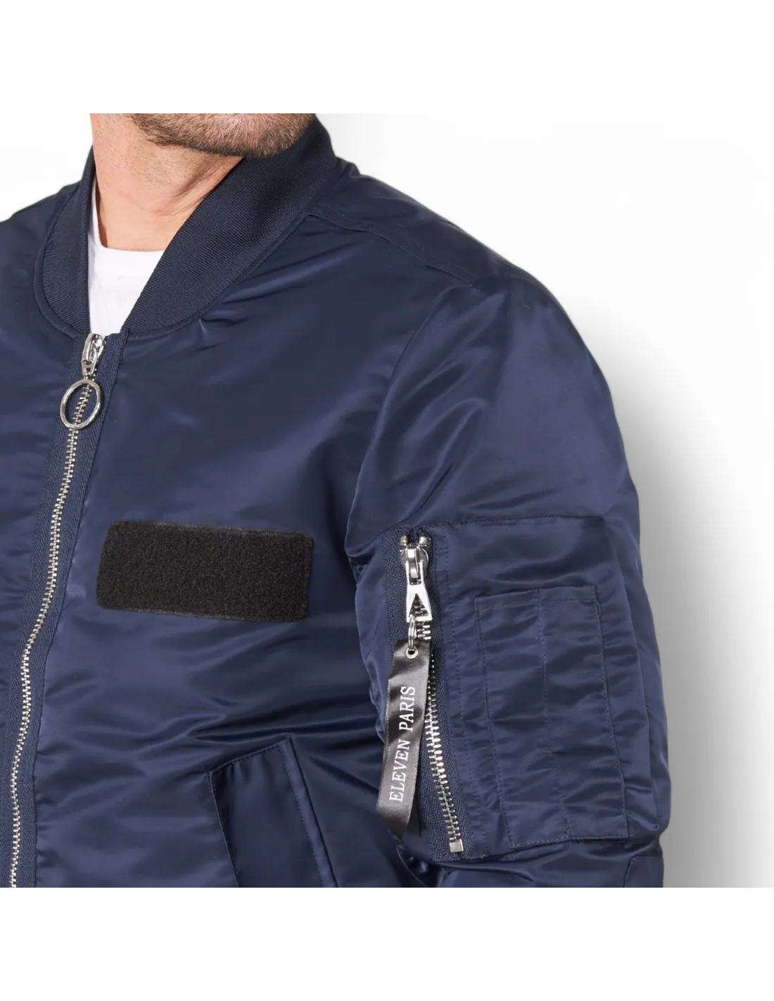 Ce bomber Eleven Paris affiche une vraie identité avec sa matière brillante et ses finitions inspirées de l’univers streetwear. Sa poche zippée sur la manche, associée au patch velcro sur la poitrine, lui donne un caractère affirmé qui ne passe pas inaperçu.
