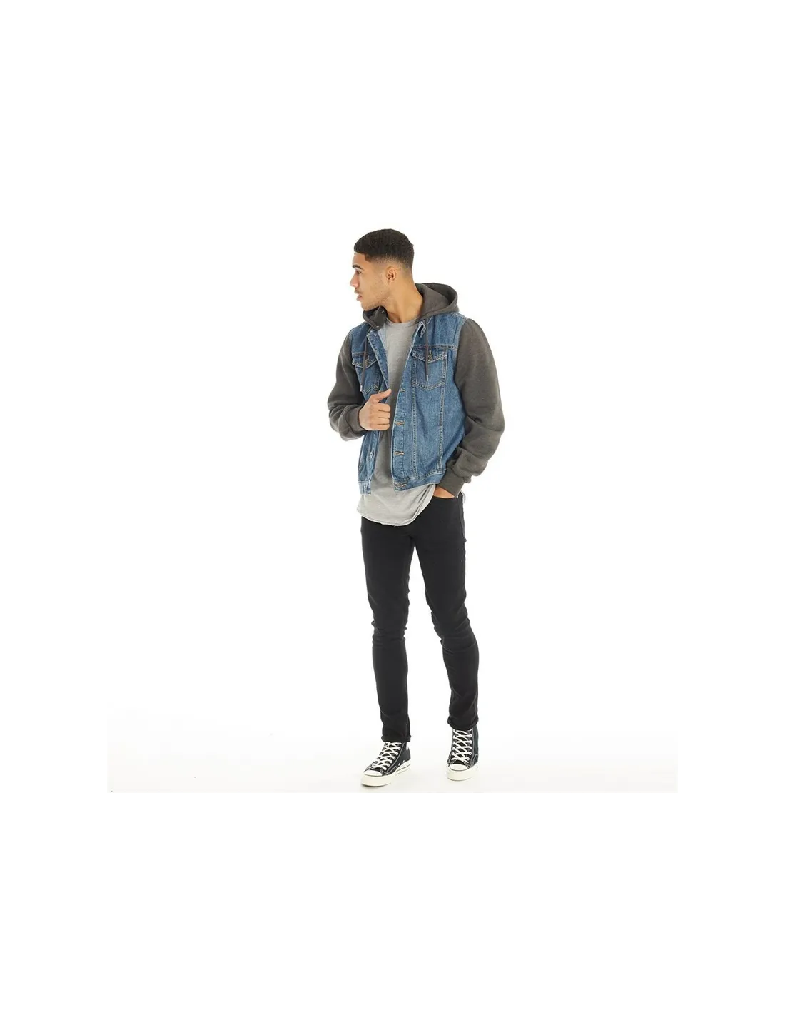 Les manches et la capuche en maille apportent une touche sportswear, tandis que le corps en jean conserve l’esprit authentique de la veste en denim. Facile à porter au quotidien, elle s’adapte aussi bien aux tenues casual qu’aux looks urbains.