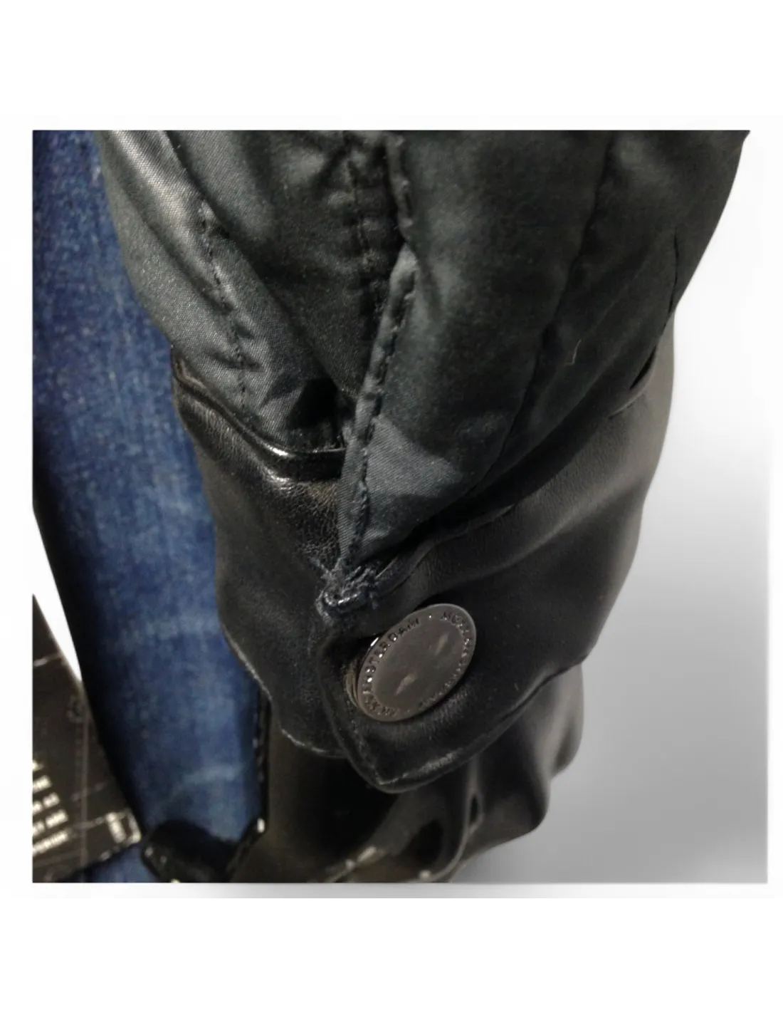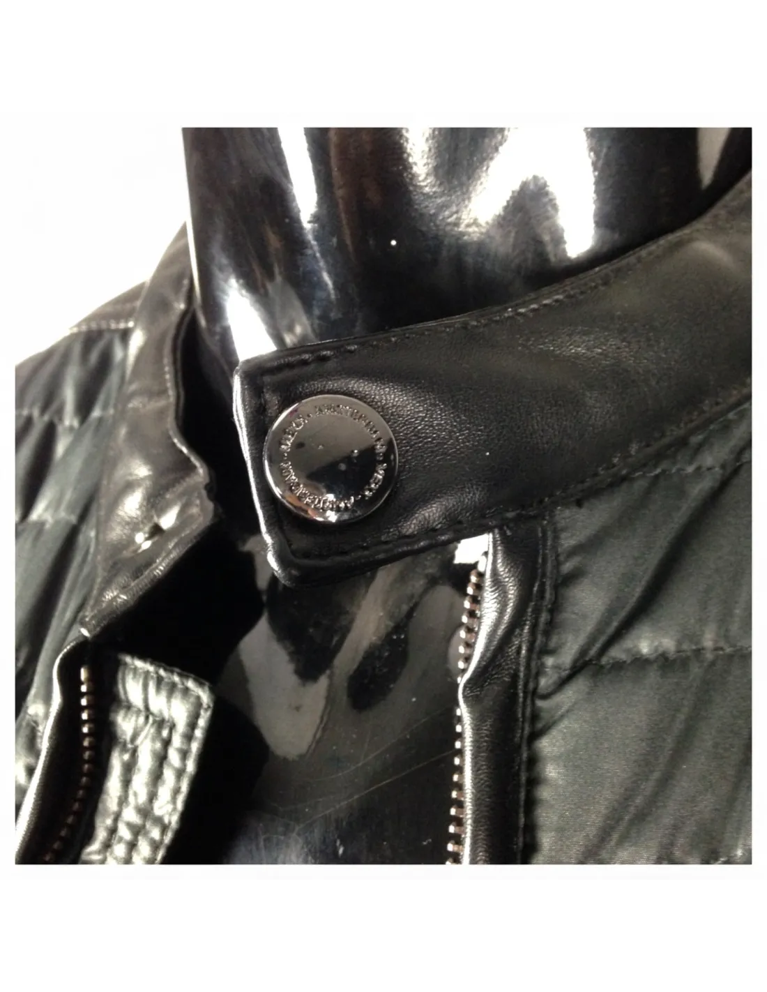 Les empiècements en simili cuir au niveau du col, des épaules et des poignets renforcent son caractère premium, tandis que la fermeture zippée et le bouton pression au col ajoutent une touche fonctionnelle et raffinée.